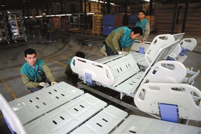 18日,在咸宁经济开发区,厚福医疗公司员工正在生产外销产品。春节刚过,开发区42家规模以上企业纷纷进入满负荷生产状态,预计一季度可完成工业总产值27亿元,完成工业增加值2.16亿元,为首季开门红打下坚实基础。 记者 袁灿 摄