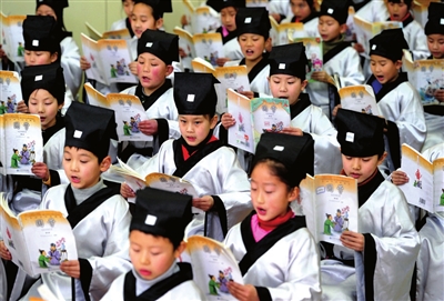 2月21日,合肥市习友小学学生在吟诵《论语》。