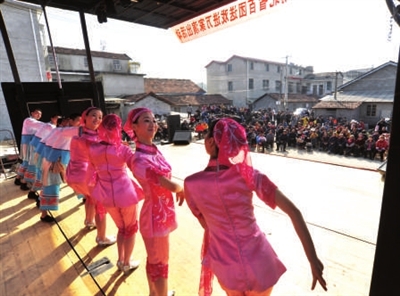 “村里留守老人、儿童多,今天送戏进村的活动,让我们聚到一起,增强了邻里间的感情和交流,也丰富了农村单调的文化生活。”20日,咸安区马桥镇潜山村二组徐家湾村民徐亚会带着孩子看演出。当日,主题为“我的中国梦”湖北省百团送戏进万家演出活动的首场来到该村,12个雅俗共赏的节目由市歌舞剧团演职人员专门创作,全年将演出50场,此后陆续赴县市区各村镇演出。