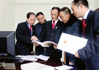 2月26日,市中级人民法院干警在分析案情。近年来,该院坚持公信立院,加强审判管理,着力提高案件质效。仅去年共受理案件1522件,结案1457件,在全省法院系统审判绩效综合考评中排名第一。记者 袁灿 通讯员 佘建兰 摄