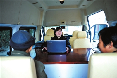 日前,咸安区桂花镇明星村,咸安区地税局工作人员在流动办税服务厅的车上为村民提供税务咨询。为方便纳税人,该局在每个月的申报期内,利用流动纳税服务车灵活方便的特点,为该区边远乡镇的纳税人提供流动服务,解决了边远乡镇的纳税人办税难的问题。