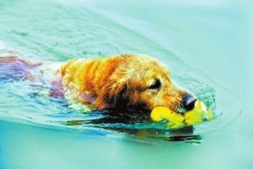 周泽村没事时经常丢些玩具进水里让它叼回来,从而令“黄豆”形成了喜欢在水中捡拾物品的好习惯。