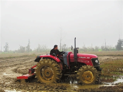 3月10日,咸安区双溪桥镇李沛村十三组的田畈里,永兴农机合作社农机手驾着耕整机正在翻耕谷桩田。该合作社今年准备种早稻200亩,目前正在为育秧作准备。 特约记者 胡剑芳 通讯员 郑进平摄