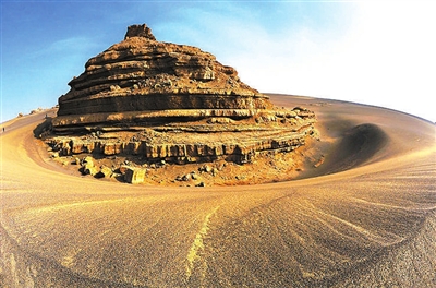 初春的午后,走进“魔鬼城”,丽日晴空下,这里静谧无声,肃穆而神秘。众多奇形怪状的土丘,有四层楼般高。导游介绍说,该地貌被《中国国家地理》“选美中国”活动评选为“中国最美的三大雅丹”第一名。