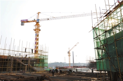 13日,武咸城铁贺胜桥东站广场前,工人们正在施工。据了解,贺胜桥东站占地面积1300余亩,一期投资10亿元,按照“一站一城”的建设模式,规划建设商业服务区、高科技产业区、居住以及社区服务区。 记者 夏正锋 通讯员 蔡娟 摄