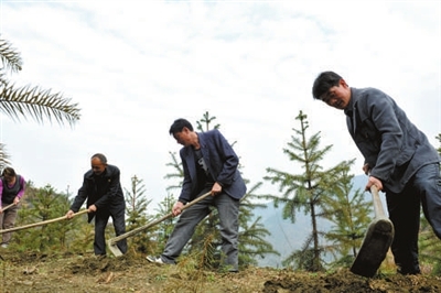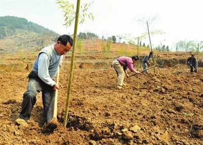 5日,崇阳县铜钟乡铜钟村,当地百姓正在种植楠竹。去冬今春,该乡筹措资金250万元,对佛岭村、大岭村、铜钟村、坳上村等4个村组的荒山进行开荒平整,修通山路,挖好沟渠,免费提供楠竹苗木,鼓励当地百姓发展楠竹产业,打造该乡万亩连片楠竹基地。