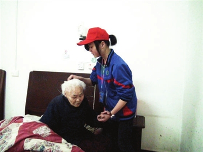 19日,崇阳县城关中学20多名青年志愿者组成青年志愿者服务队,带着大米、油、肉、水果等来到该县福利院,开展为孤寡老人献爱心服务。 通讯员 饶德斌 摄