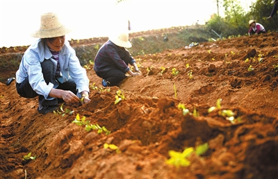 13日,崇阳县白霓镇油市村民在种植白茶。目前,该县种植白茶2万亩,开采期亩产量预计为10公斤,每亩可帮农民增收5000元。白茶含多种丰富的氨基酸,可促进人体血糖平衡。 记者 袁灿 摄