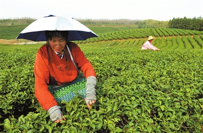 3月29日,咸安区逸思园茶业示范茶园内,村民正在采摘头茶。该茶园总面积300余亩,加工生产的“泉谷毫峰”及“瑶红1915”曾获国际金奖。 记者 程慧摄