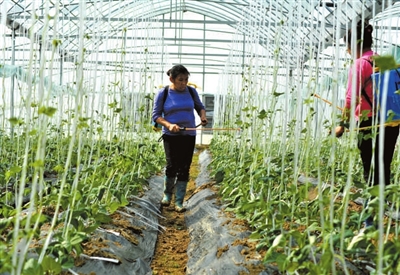 3月27日,咸安区双溪桥镇香泉蔬菜种植专业合作社大棚内,管理人员正在给四季豆喷洒农药。该基地共有100多亩,种植了10余个果蔬品种,预计五一前夕蔬菜可陆续上市。记者 夏正锋摄