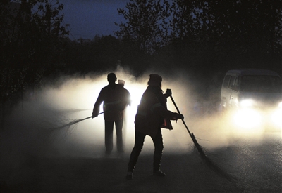 鲁欢喜家离出村路最近,自然成了她们上岗前的集合地点。几分钟后,杜来英来到鲁家,其他几个随后也陆续赶来。为了赶早清扫,她们早上都顾不上吃早饭。