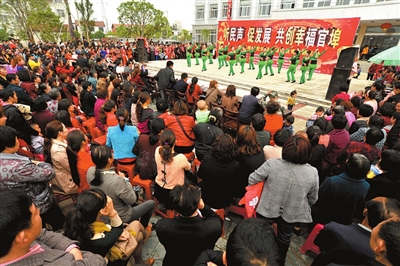 15日,咸安区官埠桥镇18支由村民自编自演节目,进行文艺汇演,掀起以“听民声、促发展、共创幸福官埠”的主题的教育实践活动热潮。