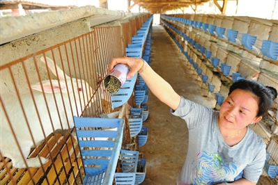 图二 9日,赤壁市柳山湖镇东南獭兔养殖农民专业合作社,养殖人员正在分笼喂食。负责人谈三元介绍, 合作社对入社农户提供技术支持、销售渠道等。据了解,仅谈三元一户便养有獭兔5000余只,年出笼量达2.4万只,每只兔子可创造30至40元的经济效益。 记者 程慧 通讯员 张杰 蒋文玲 摄