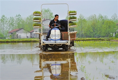 12日,咸安区汀泗桥镇赤岗村俊敏种植专业合作社,社员杨新福的田里机声隆隆,早稻已开始机插移栽。据了解,今年全市早稻机插面积达20万亩,目前,早稻机插已全面铺开。