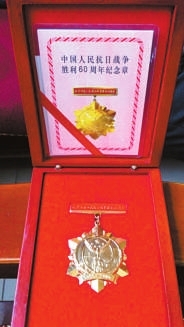 说话间,许旗军从房间拿出一块“纪念中国人民抗日战争胜利60周年纪念章”。这是2005年隆重纪念中国人民抗日战争暨世界反法西斯战争胜利60周年之际,中共中央、国务院、中央军委向全国所有健在的抗战老战士、老同志及抗日将领或其遗属颁发的。这块纪念章的主人就是牛义卓。