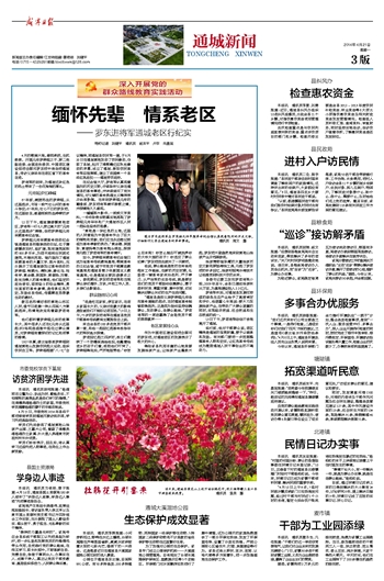 临行前,他对干部群众说,老区精神是通城的宝贵财富,要予以继承和发扬。有关部门要进一步挖掘整理革命人物和史实,让红色革命传统成为激励通城人民干事创业的不竭动力。