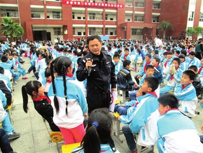 赤马港中队指导员郑武针用身边的人和事,为学生讲授交通安全基本常识,通过举例讲解、互动问答的方式,寓教于乐,教导孩子们增强自我保护意识和提高防范交通事故能力。 通讯员 郑斌 陆秋良摄