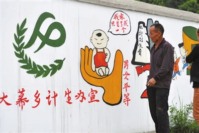 日前,咸安区大幕乡井头村,村民正饶有兴趣观看村墙面的诙谐计生宣传漫画。为切实让计生政策深入人心,该乡计生工作人员以通俗易懂的漫画形式,开展计生宣传,提高出生人口素质。 记者 陈红菊 摄