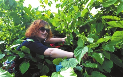 7日,赤壁市官塘驿镇龙凤山农民专业合作社,游客正在桑葚园里采摘。该基地于2011年由98户社员共同建设,占地500余亩,亩产桑葚1500公斤。社员邓松如说:“桑葚采摘期集中在4月下旬至5月中旬,高峰时段,每天有600多名游客进园采摘。” 记者 夏正锋 通讯员 张杰 龚炜 摄