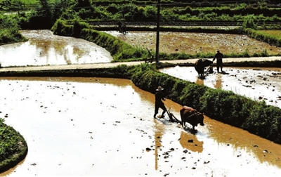 眼下,油菜已大部分收割完,山乡农民开始犁田耙地。受地形影响,机械化种地在这里派不上用场,传统的牛耕依然唱主角。农民们扬鞭赶牛,勾勒出一幅生动的农耕图。