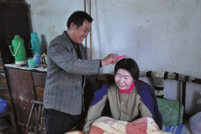 31年来,曾红星不离不弃地悉心照顾妻子。叶桂菊病痛发作时,他在她身边耐心安慰;叶桂菊长时间躺在床上肌肉容易萎缩,他就天天给她全身按摩;叶桂菊行动不便,他坚持天天为她喂水喂饭……