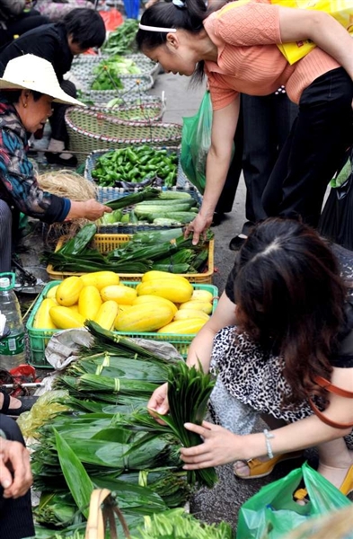 据了解,端午临近,各大超市和商铺纷纷推出各种味道的粽子,但销量却不温不火,而菜场内的粽叶却格外俏销。