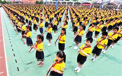 30日,市实验小学,学生们正在表演巴乌和武术。当日,实验小学庆祝“六一”国际儿童节暨第十四届美育节隆重举行。武术表演、巴乌演奏、航模大赛、趣味游戏……丰富多彩的庆祝节目轮番上演,孩子们沉浸其中,在参与中度过一个愉快的儿童节。记者夏正锋 通讯员 付步雄摄
