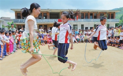 5月30日,江西省于都县第二中学志愿者来到村小学开展以“献爱心、迎六一”为主题的活动,与小朋友一起做游戏、参加趣味比赛等,并举行爱心捐助活动。据新华社