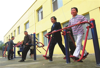 5月26日,通城县石南镇福利院老人在室外进行体育锻炼。近年来,该院积极加强文化娱乐设施建设,相继配置室外健身器材、棋牌室、书刊阅读室等,让生活在这里的80多名老人老有所养、老有所乐,被评为“湖北省百强农村福利院”、“咸宁市老年人活动中心试点福利院”。