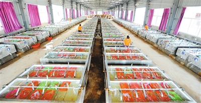 6月10日,在嘉鱼县三湖渔业繁育中心,叉尾鮰苗种正大批量运往全国各地,目前已销售卵黄苗、开口苗2亿多尾。据悉,该中心占地100亩,建设投资4623万元,可年繁育优质叉尾鮰苗种10亿尾,实现产值1亿元。 通讯员 雷平 摄