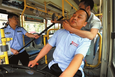 本报讯 记者陈红菊、通讯员陈佳报道:昨日,一辆营运中的公交车上,突然发生“劫匪”劫持乘客事件。驾驶员迅速将车停靠路边,打开车门,让乘客逃离,并利用车载报警系统报警。“劫匪”发现后,转而劫持驾驶员。很快,民警闻讯赶到现场,成功解救人质,并将“歹徒”制服……
