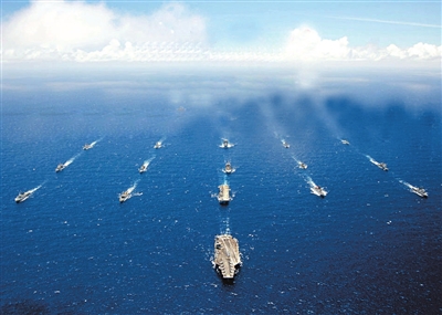 以美军为主导的环太平洋军事军演始于1971年,是国际上规模最大的多国海上联合军演,目的在于保障太平洋沿岸国家海上通道的安全以及联合反恐。在美苏对立下的冷战时期,演习主要以联盟作战课目为主。随着苏联解体、各国面临的海上安全威胁日益突出,演习现已逐渐拓展到探讨多国海上军事合作、针对非传统安全课目的演练。