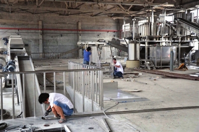 原来,由于工期比较紧,自去年9月份正式开工建设以来,该项目部采取挂图作战、倒排工期、交叉施工、循环推进的模式开展施工。为了抢抓进度,工程管理人员放弃所有节假日,坚守岗位,并不惜追加工程费用来确保工程进度。最高峰的时候,工地上有近百名工人同时施工,加班加点赶进度。目前,机械设备安装已进入尾声,即将进入试生产阶段,届时可解决200人就业。