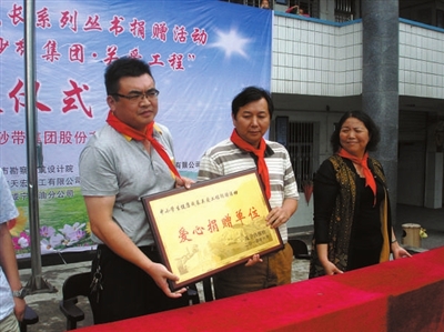 24日,中小学生健康系列丛书捐赠活动在通城县隽水小学举行,湖北玉立集团将500册价值3万余元的图书捐赠给该校师生。捐赠活动由咸宁日报社发起,主要由爱心企业、人士等社会力量筹集善款。通讯员 黄二甫 摄