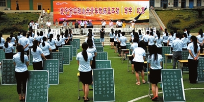 为了打造书香校园,提升教师素质,12日,市实验小学隆重举行青年教师写字比赛,并邀请咸宁市知名书法家和书法爱好者现场表演书法。通讯员 付步雄摄