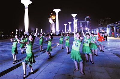每当夜幕降临、华灯初上之时,崇阳县桃溪广场上就人流如织,歌舞飞扬。22日晚,广场上一支由14人组成的“娘子军”舞得特开心。交谈中,得知她们都是城里市场上卖菜的,平均年龄在40岁左右,白天在农贸市场卖菜,晚上就来学跳舞,日子过得有滋有味的。