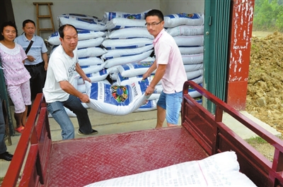 日前,崇阳县石城镇组织资金,购进一批复混肥、腐蚀剂等生产资料,免费发放给困难群众和种粮大户。图为该镇八一村领取点,群众喜领生产资料。