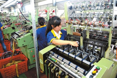 6月25日,武汉(嘉鱼)金亮织带有限公司员工在赶制生产销往欧美市场的产品。该公司主要生产服饰所需的各类织带,产品远销欧洲、美国等国外市场,年产织带7000万米,产值5000万元。