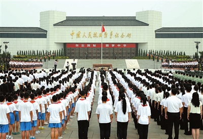 7日,博物馆全体职工及空军某部官兵110人在中山舰阵亡将士纪念碑前举行了隆重的悼念活动,向纪念碑敬献花篮,共同缅怀为国捐躯的抗日英灵。(据新华社)