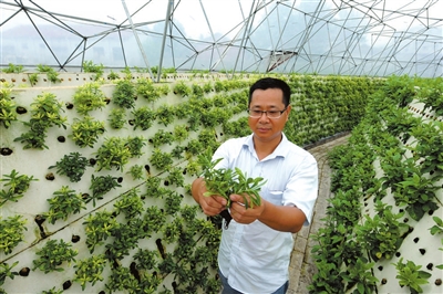 2日,咸安区向阳湖镇湖北爱尔蔬生态农业有限公司的温棚里,公司负责人李辉培育的救心茶进入采摘期。