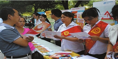 泰康人寿、新华人寿、人保人寿、阳光人寿咸宁中心支公司利用客服大厅电子屏幕滚动播放保险公众宣传日相关信息、向过往广大百姓发放保险知识小册子,设立保险咨询台进一步向社会公众普及保险消费知识。还走进社区、街道等公共场所,向公众宣传金融保险知识和科学消费理念,将公司诚信品牌推广和社会公益活动结合在一起,既充分发挥保险公司应尽的社会责任和义务,又将诚信保险理念在更广阔的范围内有效传播出去。