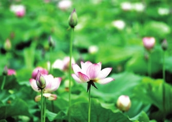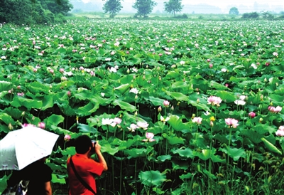 近日,嘉鱼县陆溪镇藕塘村,游客在荷塘边赏荷拍照。大片的荷塘上,荷叶青翠,高低错落,连成一片。碧绿的荷叶间,粉色的荷花竞相绽放,不少游客慕名前来欣赏荷花,沉醉在美景之中,流连忘返。 记者 夏正锋摄