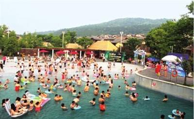 温泉城水上乐园,地处万年潜山脚下,享受万年潜山的清凉山风、周边高山掩映,风景优美;交通便利,自7月初以来,项目开通社区巴士,专为已经入住的业主,全程接送,从项目泊林苑区至温泉中心花坛,十分便利;不仅如此,水上乐园设施齐全,适合全家人游玩。30多平米的山间lED屏幕,不论是个人PARTY、还是自己歌唱,都可以让自己犹如个人演唱会的效果;300多平的逼真海浪池,半米多高的定时造浪,享受海滩一样的舒适感;如果你童心不泯,还可以带着孩子,一起从山间的彩虹滑道、旋风滑道上,一同体验瞬间失重的超级快感;当然,儿童戏水池、儿童泳池等必备的家庭娱乐池,在水上乐园,也是超级搞笑的必备工具。
