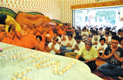 7月20日,在马来西亚吉隆坡,僧侣和民众为马航MH17航班祈福。当日,马来西亚一家佛教团体为发生空难事故的马航MH17航班举办一场祈福会。 据新华社