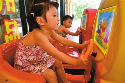 某商店老板说,现在是夏季,正值暑期,摇摇车生意进入旺季。而且,小孩子都喜欢玩,该店原本只有一台摇摇车,因为生意太好,今年又加了两台。