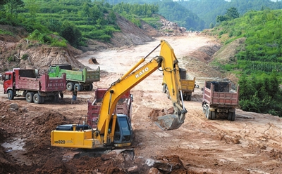 7月28日,崇阳县白霓大道正加紧建设。该大道全长3.8公里,总投资2000万元,双向六车道,是白霓工业园建设的开篇之作。工程建成后,将极大推动白霓镇区开发进程,加快镇域经济发展。 记者 袁灿 摄