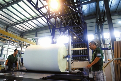 7月28日,湖北(通山)诚丰聚氨酯有限公司员工冒着高温在生产,确保完成全年各项目标任务。目前,公司生产的工业用泡棉,被东风、通用、格力、美的等知名企业采用,呈现出产销两旺的好势头。 记者 袁灿 摄