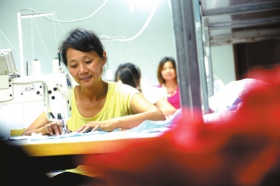 7月29日,咸安区马桥镇马桥村妇女唐珍云在当地的咸宁鑫玛服饰有限公司上班。去年以来,马桥镇实施优惠政策,加大服装技术培训,吸纳了当地200多名农村富余劳动力进入服装企业务工,实现了在家门口就业。 记者 袁灿 通讯员 刘明升 摄