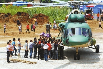 8月4日傍晚,云南省巧家县包谷垴乡红石岩村的山路上,十几名武警官兵用自制的担架抬着一位伤员行进着。几小时后,伤员被安全送到设立在山顶的灾区医疗点,得到了有效救治……