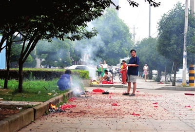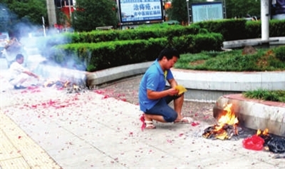 10日是中元节,俗称“七月半”,不少市民在城区人行道、绿化带旁烧纸、放鞭,纸灰飞扬,烟雾缭绕。